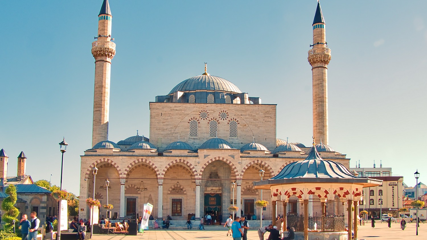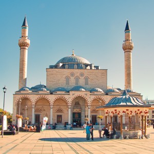Первая остановка в 09:00-10:30 (санитарная). Путешествие в Конию (~220 км), после которого – прогулка по религиозному комплексу Мевляна. Мевляна – старинный восточный монастырь, пристанище монахов, поэтов и философов. Центр суффийской культуры. Его основал сам Мевляна Руми – его роль в поэзии Востока велика так же, как Пушкина – в русской. Только Руми это еще и основатель ордена дервишей – танцующих монахов.