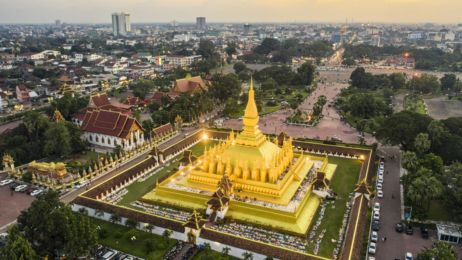 Обзорная экскурсия по городу с осмотром самого старого и единственно сохранившегося во время индокитайской войны храма Ват Сисакет, далее осмотр храма Хор Пракео, построенного в 1565 г. для сохранения статуи Изумрудного Будды, привезенной из Чианг Мая (Таиланд) и позднее возвращенной в Бангкок. Посещение священной золотой ступы – символа и самого важного национального памятника Лаоса – Тат Луанг Шрайн (в переводе – Великая Священная Ступа). Посещение храма Онгтеу (Vat Ong Teu), который известен как институт Буддизма Теравады. Если позволит время, то вы посетите местный ремесленный рынок, где можно купить необычные сувениры. Переезд к триумфальной арке Патуксай – символу Вьентьяна, сооруженной в честь победы в форме триумфальной арки Парижа, дополненной типичным лаосским орнаментом. С вершины триумфальной арки открывается панорамный вид на город.