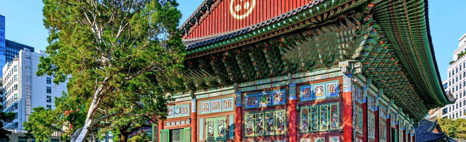 Храм Чогеса находится в центральной части города Сеула и считается сердцем корейского Дзен-буддизма. Первыми туристов встретят величественные древние деревья, растущие на территории храма. Здание Тэунчжон было построено в центре храма в 1938 году и настолько велико, что даже больше святилища Кынчжончжон во Дворце Кенбокгун. Особенностью этого храмового здания считаются чудесные разноцветные узоры «танчхон». Внутри Тэунчжона можно увидеть статую Будды Сокгамони и покорно кланяющихся буддистов. У здания Тэунчжон стоит 7-ярусная каменная пагода, в которой хранятся святые останки монахов.