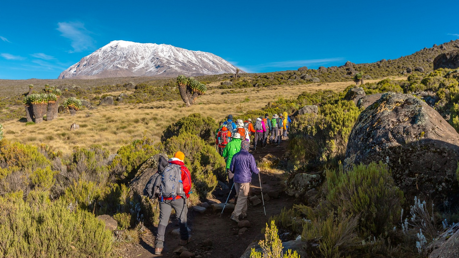 После завтрака продолжение восхождения. Вся бурная растительность, окружавшая в начале пути, осталась позади. И теперь путь пролегает по альпийской пустыне, состоящей из скал и осколков лавы. От Хоромбо до Кибо есть 2 пути. Левая дорога, более простая и пологая, занимает 6 часов. Дорога, уходящая направо, дольше на 1 час и сложнее. Рекомендуется выбирать более простую дорогу левую.